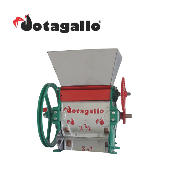 Despulpadora Jotagallo 2 ¾, capacidad de 450 a 500 kg/h, 2 chorros y cilindro horizontal en fundición para despulpado uniforme y resistente.